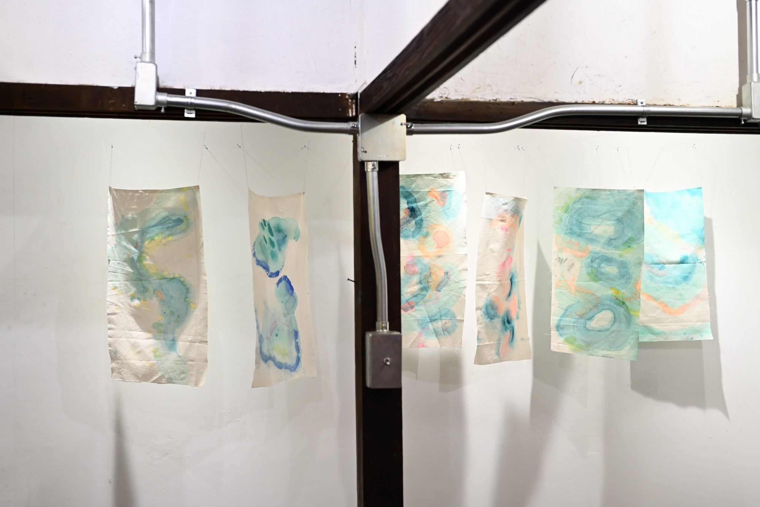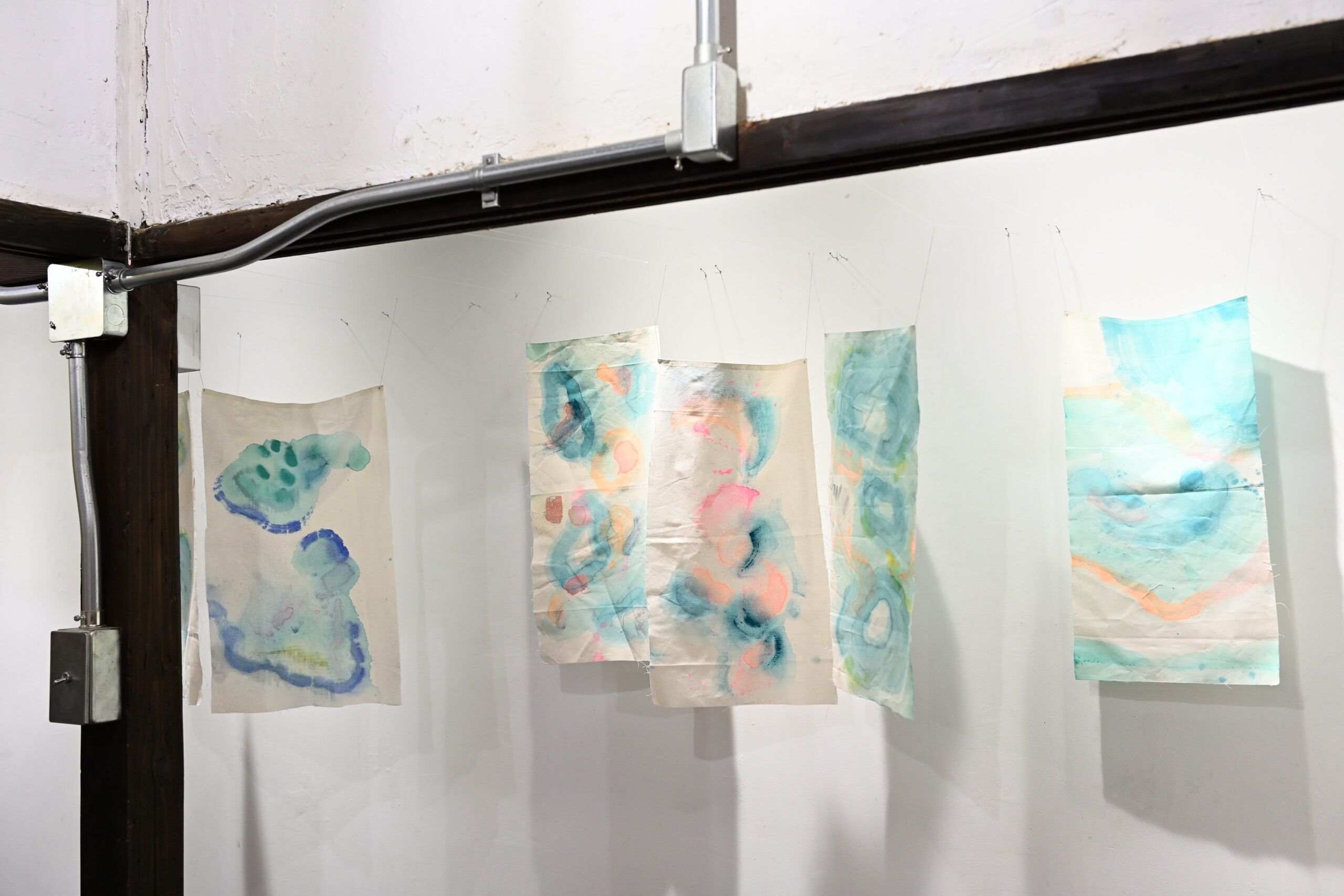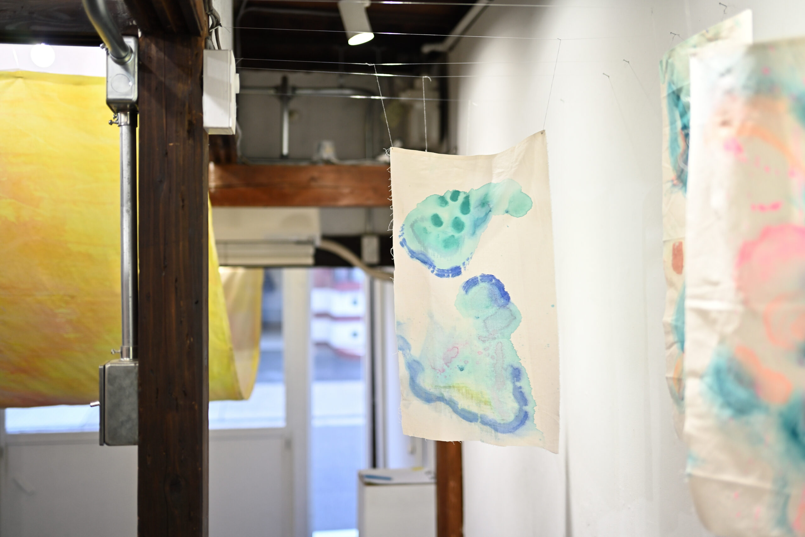 が、それぞれモモギャラリーに「布を張る」作品