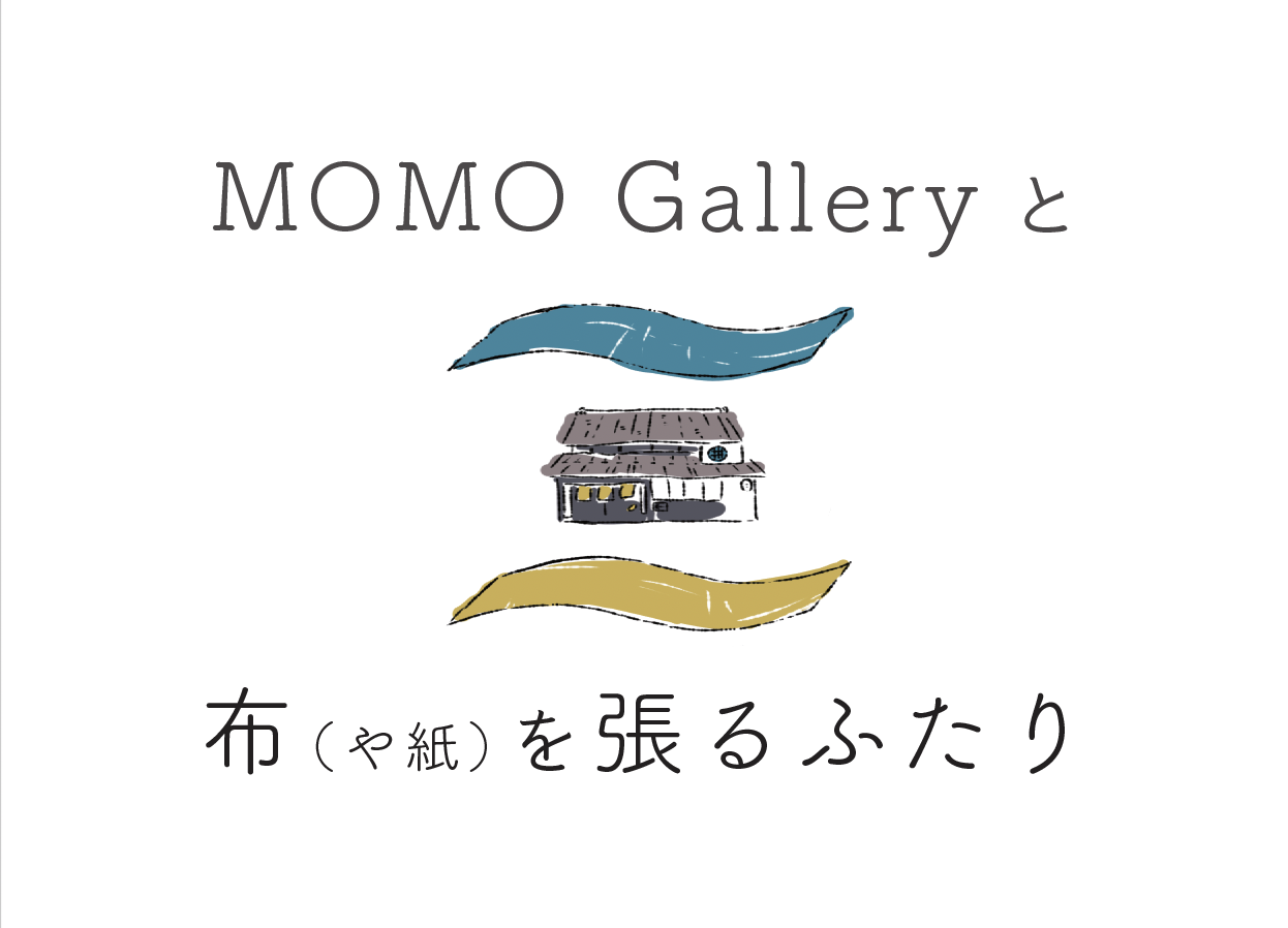 「MOMO Gallery と布(や紙)を張るふたり」