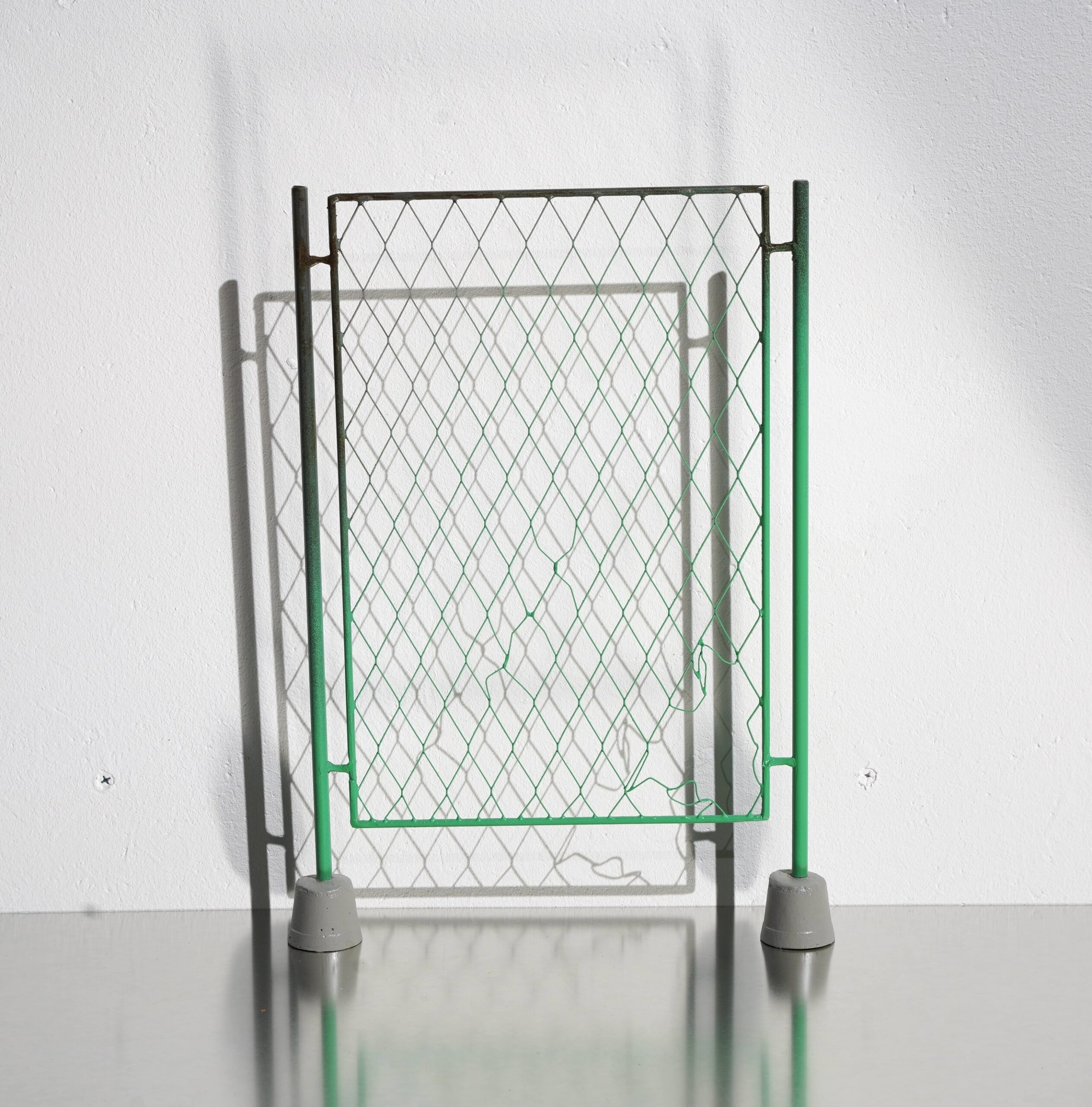 当たり前の事象を受動的に受け入れ続けることへの危機感を制作の主題としています。見えにくいものを見ようとする事と、想像を膨らませる事は似ていると感じます。見づらい作品を制作することで「目を凝らしてよく見て」もらい、当たり前のように見過ごされる違和感の再考を試みています。最近は工事や公園で使用されるフェンスを、風景画(P号)のキャンバスの比率で制作しています。フェンスは内側と外側の安全や安心を守る役割を持っています。しかし安全安心は時には退屈で、何か変化を期待してしまいます。退屈を打破する機会を、フェンス越しの景色を眺めながら常に伺っている様な気がします。